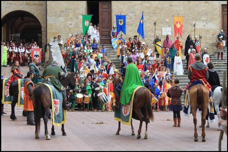Il 12 e 19 agosto a Volterra (Pisa) destrieri, cavalieri, sbandieratori e balestrieri, musici e giullari per la festa Volterra A.D.1398.